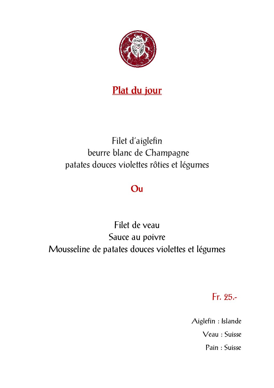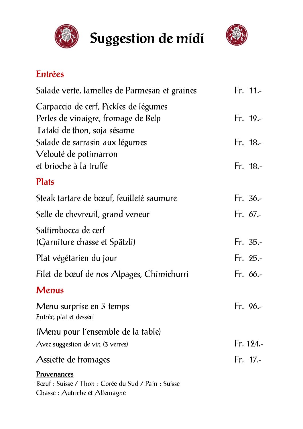 Menu du soir du mardi à jeudi Fr. 58.- , en plus la carte du soir